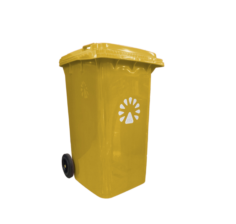Basurero contenedor de 240 litros color amarillo, fabricado en polietileno de alta densidad (HDPE), ideal para la gestión eficiente de residuos en hogares, oficinas, comercios, industrias y espacios públicos. Su capacidad de 240 litros permite almacenar grandes volúmenes de basura, reduciendo la frecuencia de vaciado y mejorando el orden y la limpieza.
